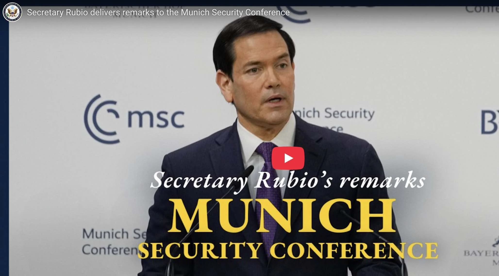 U.S. Secretary of State Marco Rubio, delivering his remarks at the 2026 Munich Security Conference